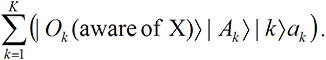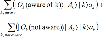 But from our experience of awareness, that is not an allowable outcome; we are always aware of a result. So the only way the time evolution can be made consistent with the at-least-one-aware requirement is to suppose the observer state vector